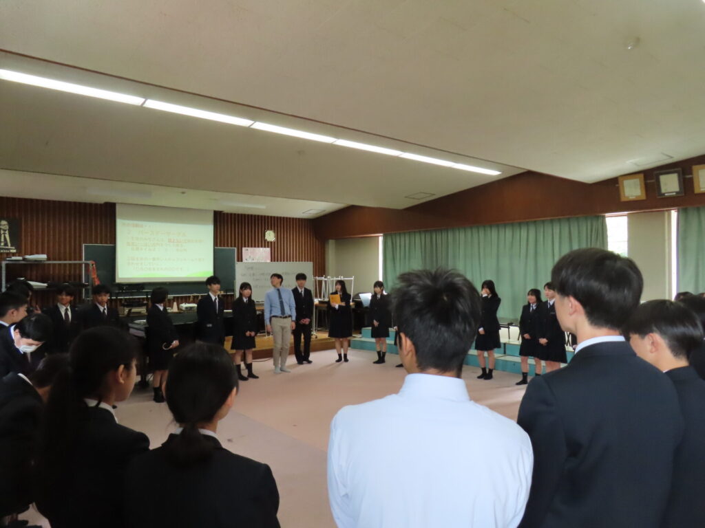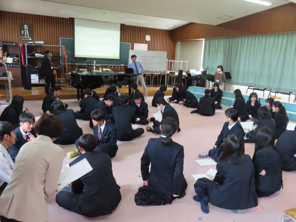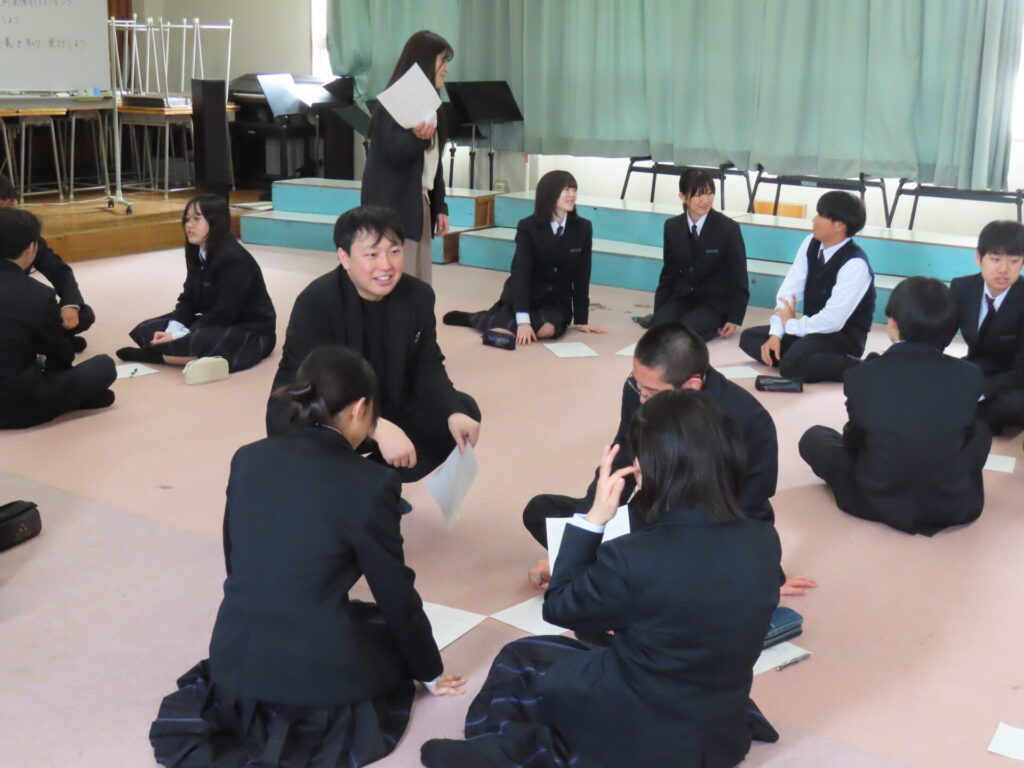 4月13日(月)に1年生を対象に「仲間づくり」を行いました。益田高校へは様々な中学校から入学してきているので、緊張感を解きほぐし学級への所属感と安心感を形成するために行います。