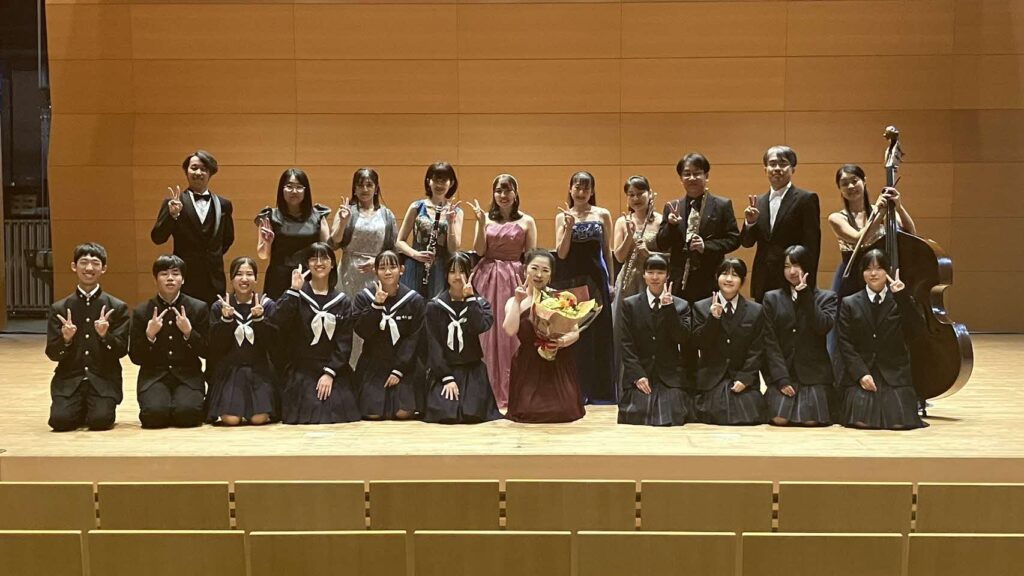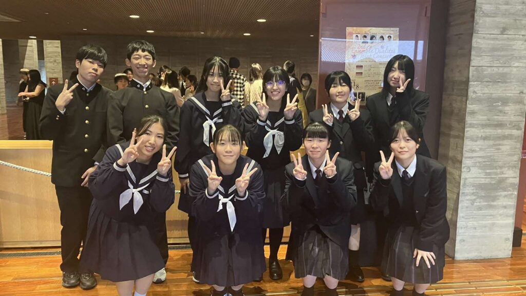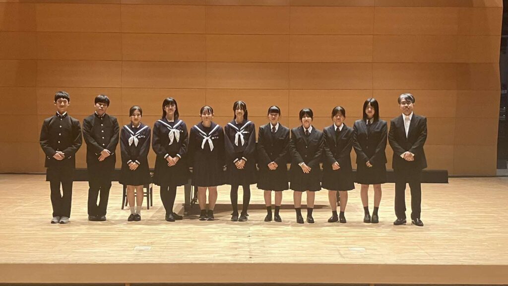 11月8日(土)合唱部はグラントワで開催された第2回アンサンブルデュアリテ・ジョイントコンサートに出演しました。本校外部講師の南波美穂さんの主催するコンサートで、声楽やピアノ、クラリネット、コントラバス、フルートのプロの方々、津和野高校の合唱部の皆さんとご一緒させていただきました。どの演奏も圧巻で演出にも工夫があり、とても勉強になりました。また、事前に津和野高校へ伺って合同練習をしたり、その帰りに道の駅でソフトクリームを食べたことも良い思い出となりました。ありがとうございました。