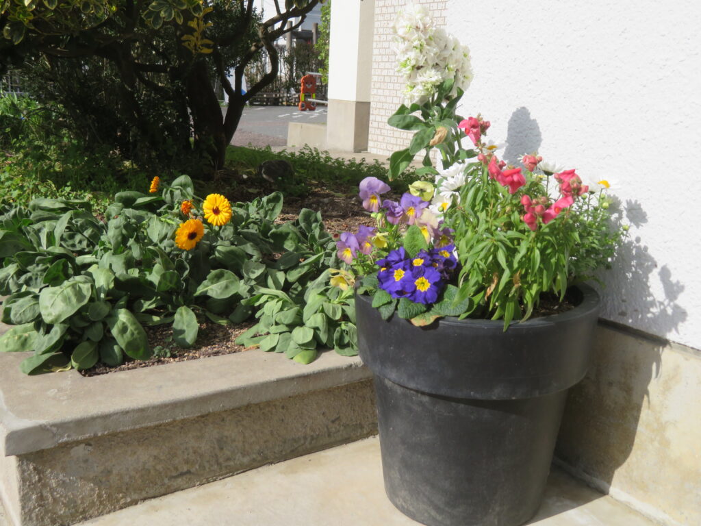 学校周辺の花も咲き始めました。校舎裏のしだれ桜は一見の価値ありです。