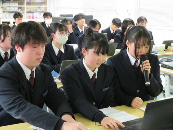 1月27日(火)に科学英語という授業の中で、2年生理数科が課題研究発表をドイツのマックスプランク分子植物生理学研究所の研究員の方々に向けて英語で行いました。発表のスライドはもちろん、質疑応答もすべて英語でやりとりをしました。貴重なフィードバックをいただくとともに、英語で研究内容について説明する難しさに少し戸惑いながらも身振り手振りを交えて表現し、伝わる喜びを感じるなど普段の生活では得られない非常に良い体験ができました。 facebookでシェアする twitterでつぶやく LINEで送る PREV BACK TO ALL NEXT